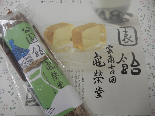 まずは、創業90年の和菓子専門店「吉原亀栄堂」を紹介します。銘菓「公園飴」は、ノスタルジックな琥珀色と趣き深い味わいのロングセラー商品です。ゼリー・飴・羊羹を合わせたような食感が人気で、夏場には冷蔵庫で冷やして食べるのがオススメなのだとか。