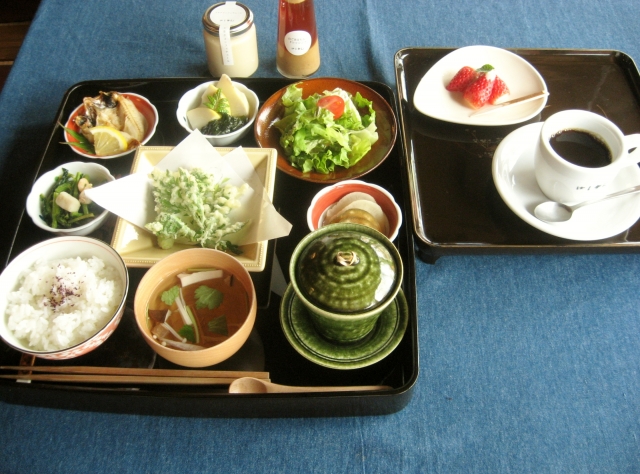 地元産の野菜を中心としたランチメニューやケーキセット等が好評とのこと。ゆっくりとティータイムを楽しめます。また、2階の「ツーリズムの宿若槻屋」は、宿泊も可能です。