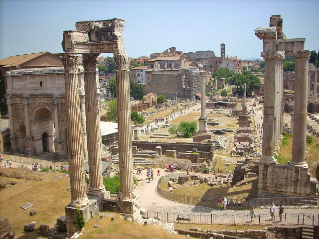 “フォロ”は、イタリア語で”公共広場”の意味で、集いなどの意味で今日使われる”フォーラム”という語の語源となっています。このフォロでは、皇帝達は演壇で演説をしたり、市民や政治家達が集まって政治討論を繰り広げたりしていました。コロッセオとヴェネツィア広場の中間に位置するフォロ・ロマーノは、現在は遺跡となっていて入場することができます。
