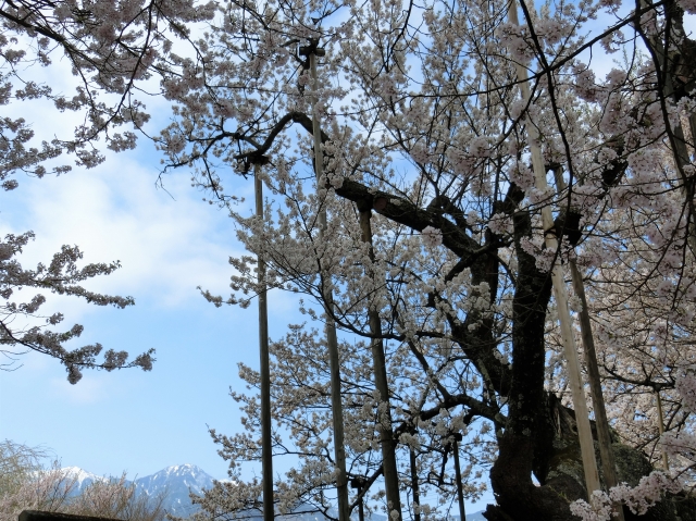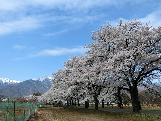 その桜並木からは、南アルプス連峰の雄々しくのびやかな姿を望むことができます。