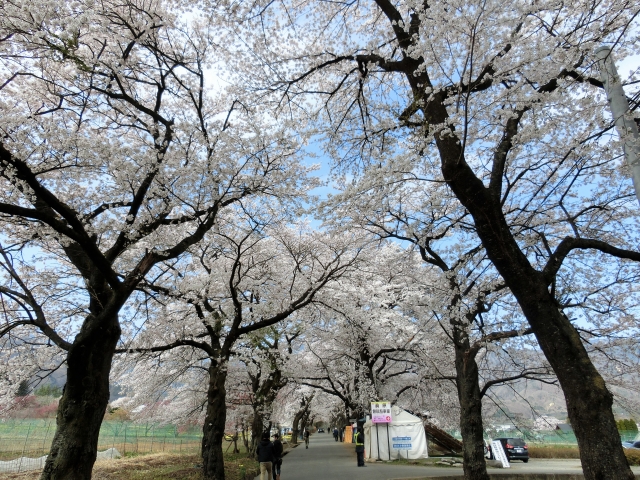 「眞原の桜並木」は車でも通行できますが、一方通行になっていますので進入方向にご注意ください。