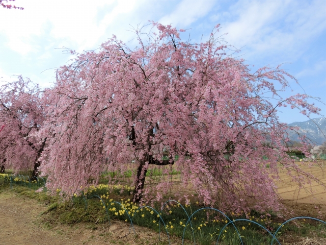 桜並木の西側には、「しだれ桜の里」があります。桜並木をゆったりと歩き、しだれ桜を愛でつつ、のんびりと散策するのも楽しいでしょう。