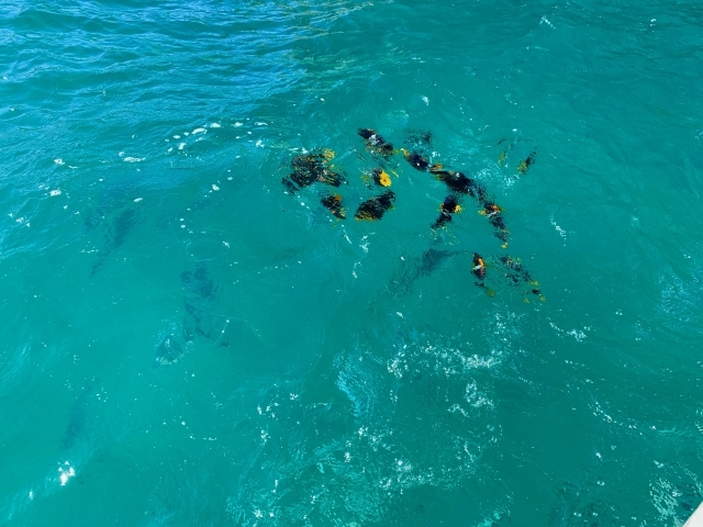 海底まで見えるのではないかと思うほど透明な海。訪れた場所は、世界でも有名なダイビングスポットの近くですから、カラフルな魚がいっぱい泳いでいます。しかも、よく観察できます。身を乗り出しすぎて落ちないように気を付けてください。案内してくれた方には、料金とは別にチップを渡すとよいでしょう。
