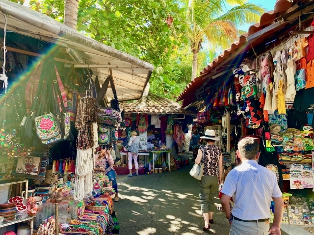 お腹がいっっぱいになったら、おみやげを探しに行きましょう。プエルト・バヤルタを代表する観光スポット、グアダルーペ寺院の周辺には、参道の両サイドを中心にショップやブティックが並んでいます。メキシコらしいすてきなデザインの洋服や小物がいっぱいですが、値段はやや高めです。