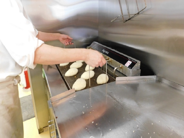 今回は、「カレーパン」を厨房で揚げているところを見せていただきました。では、早速、厨房を覗いてみましょう。