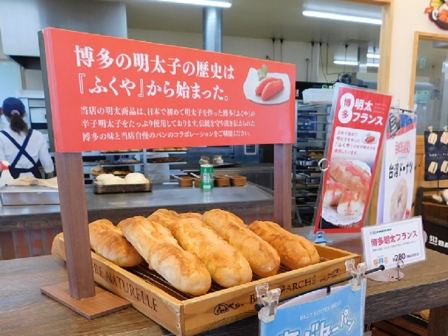 こちら(上の写真)は、明太子好きには堪らない、博多の老舗「ふくや」の明太子を惜しげもなく使った「博多明太フランス」。とても美味です。