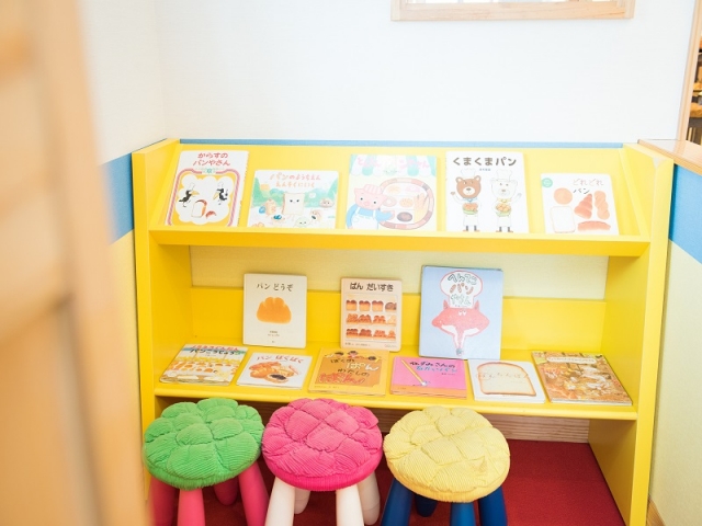また、すぐ横には、キッズコーナーである子供としょかんが併設されています。置いてある絵本は、すべてパンを題材にしたもの。あの有名な絵本『からすのパンやさん』も読むことができます。小さなお子さんと一緒に、メルヘンチックでおだやかな時間を過ごすことができます。