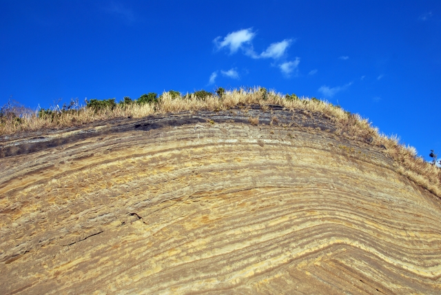 三番目に登場した大島。東京の竹芝桟橋から船で105分、調布空港から飛行機なら20分程度と本土から近いのに、大自然に出会えるのが魅力です。活火山の三原山や、日本で唯一の砂漠、まるでバームクーヘンを思わせる地層切断面、サメの大行列など、とにかく「自然がすごいことになっている」とのこと。