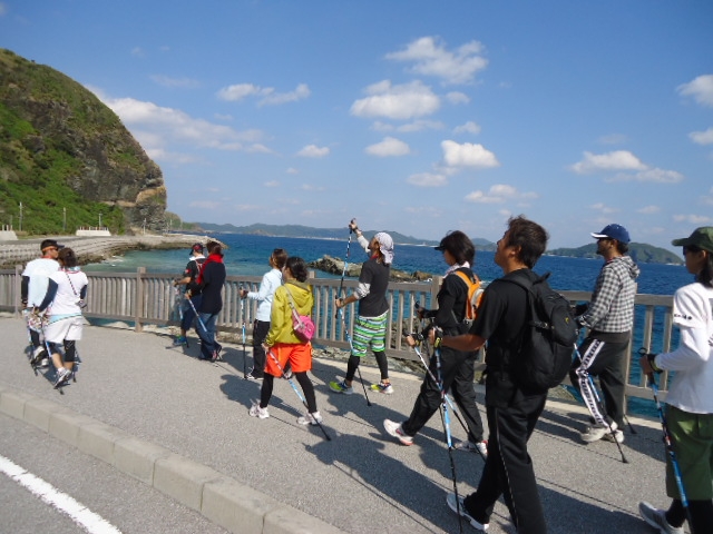 阿嘉島やお隣の座間味島では、島内の複数あるルートを用いた「ノルディック・ウォーキング」を推進しています。ノルディック・ウォーキングは、専用のポールを使って歩くフィンランド生まれのスポーツで、日本だけでなく世界中で急速に人気が高まっています。人気のヒミツは身体能力や性別・年齢に関わらず誰もが楽しめること。また、通常のウォーキングにくらべて、腰や膝への負担が軽減されることも特徴で、フィットネスとしての注目も集まっています。