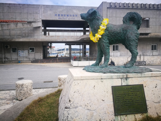 阿嘉島で飼われていた雄犬シロと、座間味島の雌犬マリリンの一途な犬の恋物語を映画化した『マリリンに逢いたい』(1988年)。マリリンに逢うために海を泳いで渡った実話を基に制作された本作、海を渡ったシロは阿嘉島の犬です。その向いている先には、座間味島のマリリンの像。時を経てもなお、マリリンとシロの絆は永遠です。