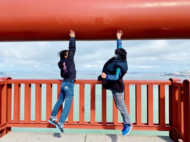 「マリン・ヘッドランド」から「ゴールデンゲート・ブリッジ」を眺めていると、子供達から質問がありました。