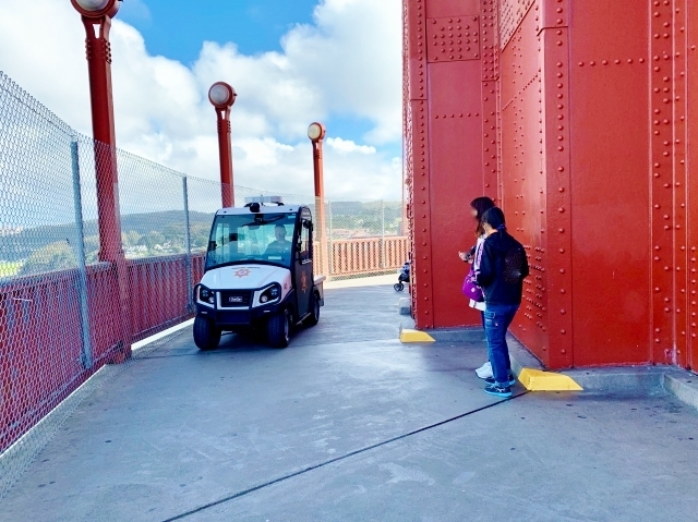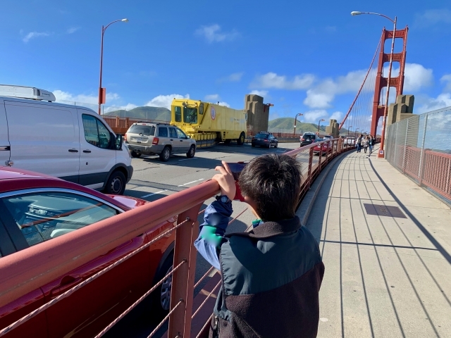 ほかにも、消防のはしご車は、前輪と後輪が別々に動いたり(4WS)、オートドライブのテスト走行車があったり、販売前の新車のテスト走行をしていたりと、「ゴールデンゲート・ブリッジ」には珍しい車がたくさん走っています。車の好きな子供には、いろんな場所でシャッターチャンスがあります。