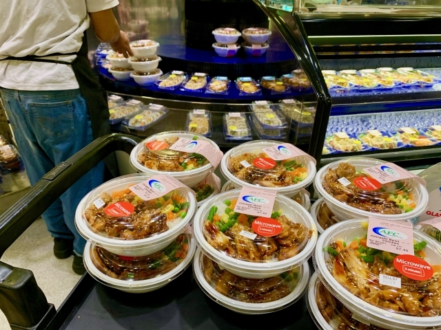 ドラッグストア(薬局)と言いつつも、作りたての弁当や総菜などが山のように陳列されています。まるで日本のスーパーのようです。