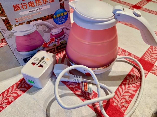 すぐに沸騰する旅行用ケトルは、かなり重宝します。カップラーメンなどのインスタント食品は、コーヒーメーカーのお湯の温度では無理があり、ルームサービスで沸騰したお湯を頼んでもやはり温度は低い。日本で3,000円ほどで売られている旅行用ケトルは、全世界対応のコンセントになっていますので、海外旅行や出張の多い方にもおすすめです。