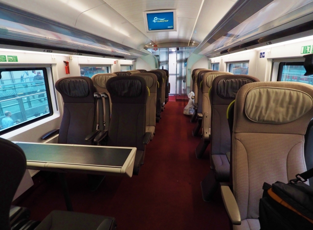 特等に該当します。時間帯に応じた食事、アルコールを含めたドリンクのサービスがあります。またロンドン・セントパンクラス駅、パリ北駅、ブリュッセル・ミディ駅にありますユーロスターラウンジが利用できます。またチェックインタイムも列車出発時刻から10分前まで可能です。またチケットの変更や払戻しも可能です。座席配置は横1+2列。