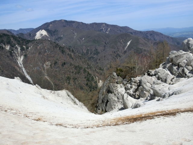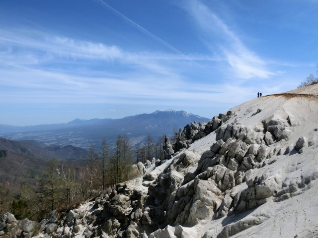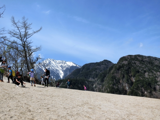 頂上は、1656.6メートル。澄んだ空気の雁ヶ原からは、周囲の山々と空の青さがより際立って目にまぶしく映ります。白い砂浜とのコントラストも美しく、まるで異世界にいるようなファンタジックな空間です。