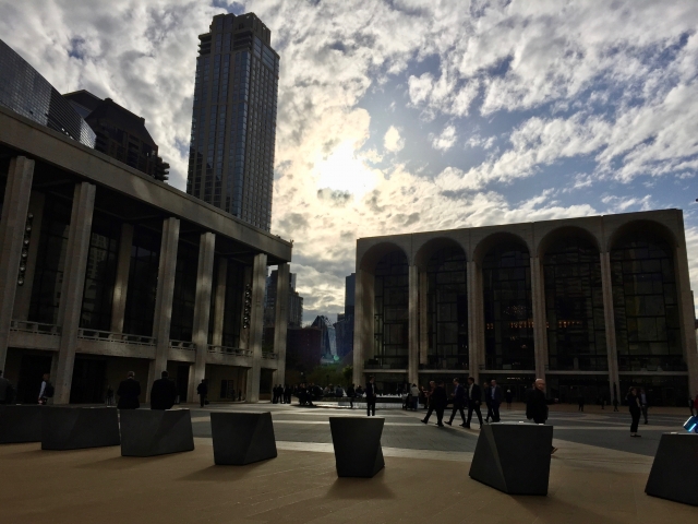 アメリカ・ニューヨークのマンハッタンにある「メトロポリタン歌劇場(Metropolitan Opera House;通称MET)」は、アメリカが誇る世界有数のオペラハウス。「舞台芸術の殿堂」と呼ばれるリンカーン・センター内に入っています。METのアーチ型のファサードを通して、左右に巨大な2枚のシャガールの壁画を見ることができます。