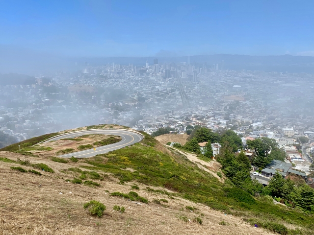 ツインピークスへは、ミュニバス(#37)を利用すると気軽に行くことができます。しかし、天気のよい日中でも、頂上や展望台の辺りは風がたいへん強く、体感気温がかなり下がります。麓が晴れていても、防寒対策をしっかりして行きましょう。