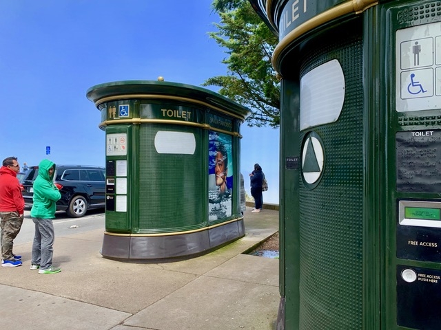 サンフランシスコの公衆トイレは、清潔な場合が多く、利用しやすいです。ただ、ツインピークスにある公衆トイレは、風が吹きつける高所にあるのでカタカタと揺れます。飛ばされることはないでしょうが、かなりドキドキします。