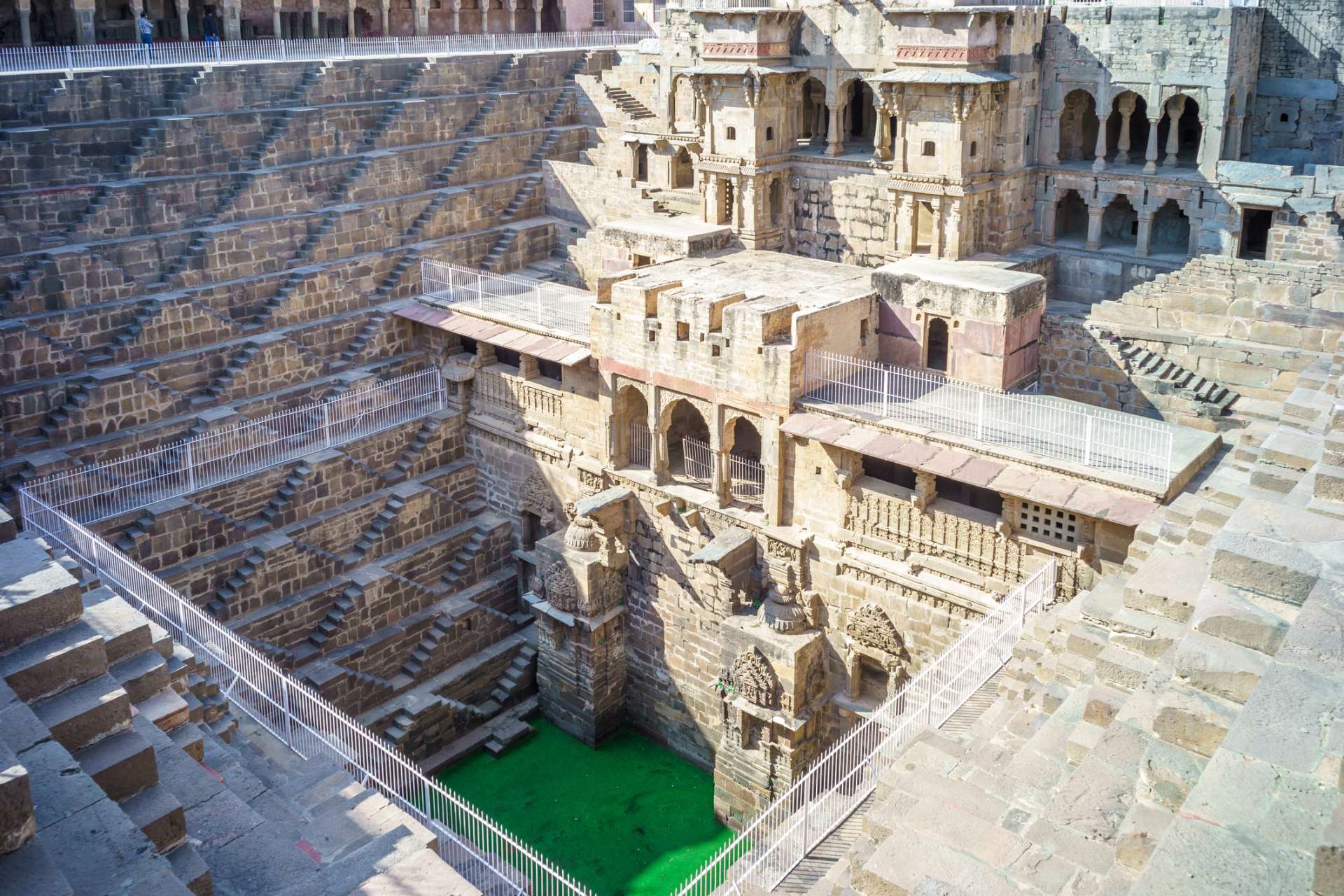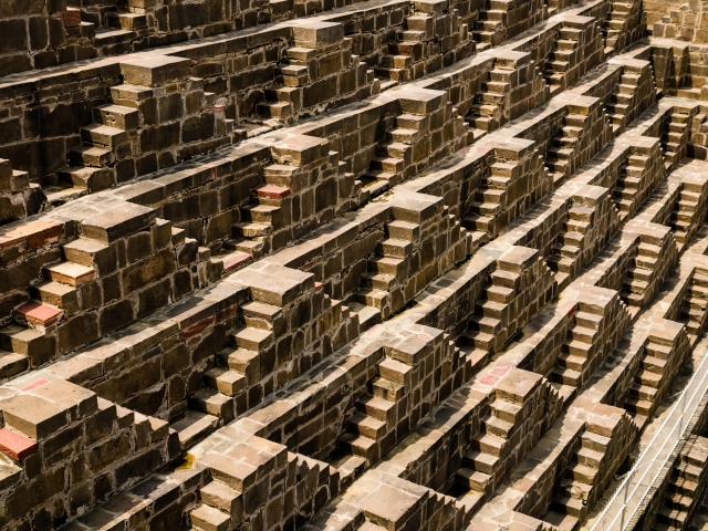 アンベール城に行ったらぜひ一緒に訪れてほしいのが、「チャンド・バーオリー」という8~9世紀に造られた巨大な階段井戸。乾季に備えて雨水を溜めておく施設で、1辺35mの四角形、深さ20m、とにかく大きくて迫力があります。