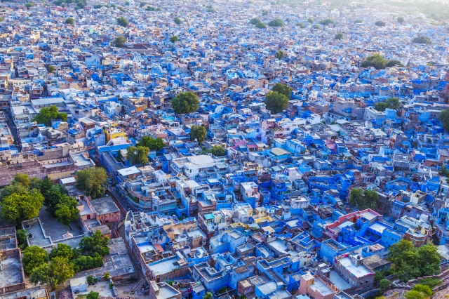 ジャイプルから西に約300km、タール砂漠の入り口にあるジョードプル。ジャイプルの“ピンクシティ”に対し、こちらは“ブルーシティ”と呼ばれています。「メヘラーンガル砦」というインド有数の城砦から見下ろす旧市街は建物全体がまっ青。