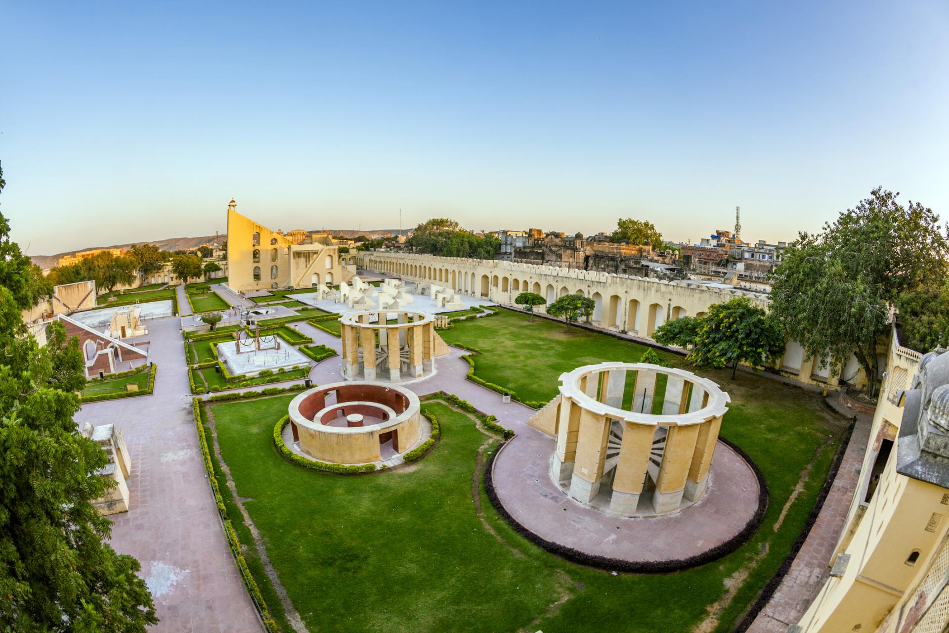 もうひとつ注目したいのが、ジャイプル市街中心部にある「ジャンタル・マンタル」。一見巨大なオブジェが並ぶモダンアートの庭園のようにも見えますが、実はこれ、18世紀にマハラジャが造った天文台。