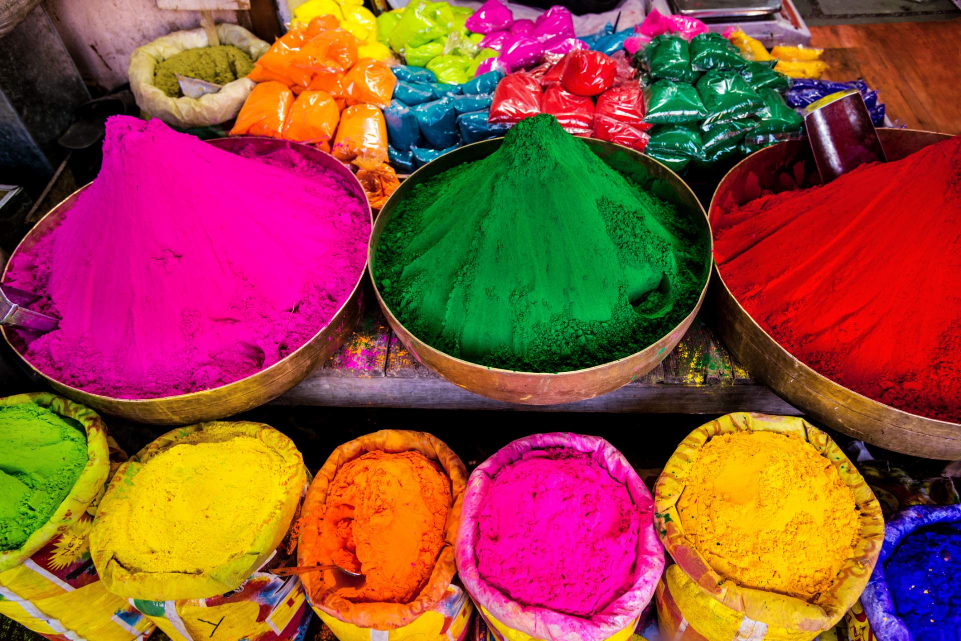 毎年3月の満月の日に、インド全土で春の到来を祝って行われるお祭り「ホーリー」。インドのなかでもいちばん華やかに祝われるのがジャイプル。ゾウさんのパレードや踊りのパフォーマンスなども開催されます。たくさんの人々が集まり、色粉や水をかけあって大盛り上がり! 世界一カラフル、そして過激で危険なお祭りといわれています。時期が合えばぜひ見て、撮ってみたいエキサイティングなイベントですが、外国人、特に女性が参加するのは危険といわれているので十分注意してくださいね。