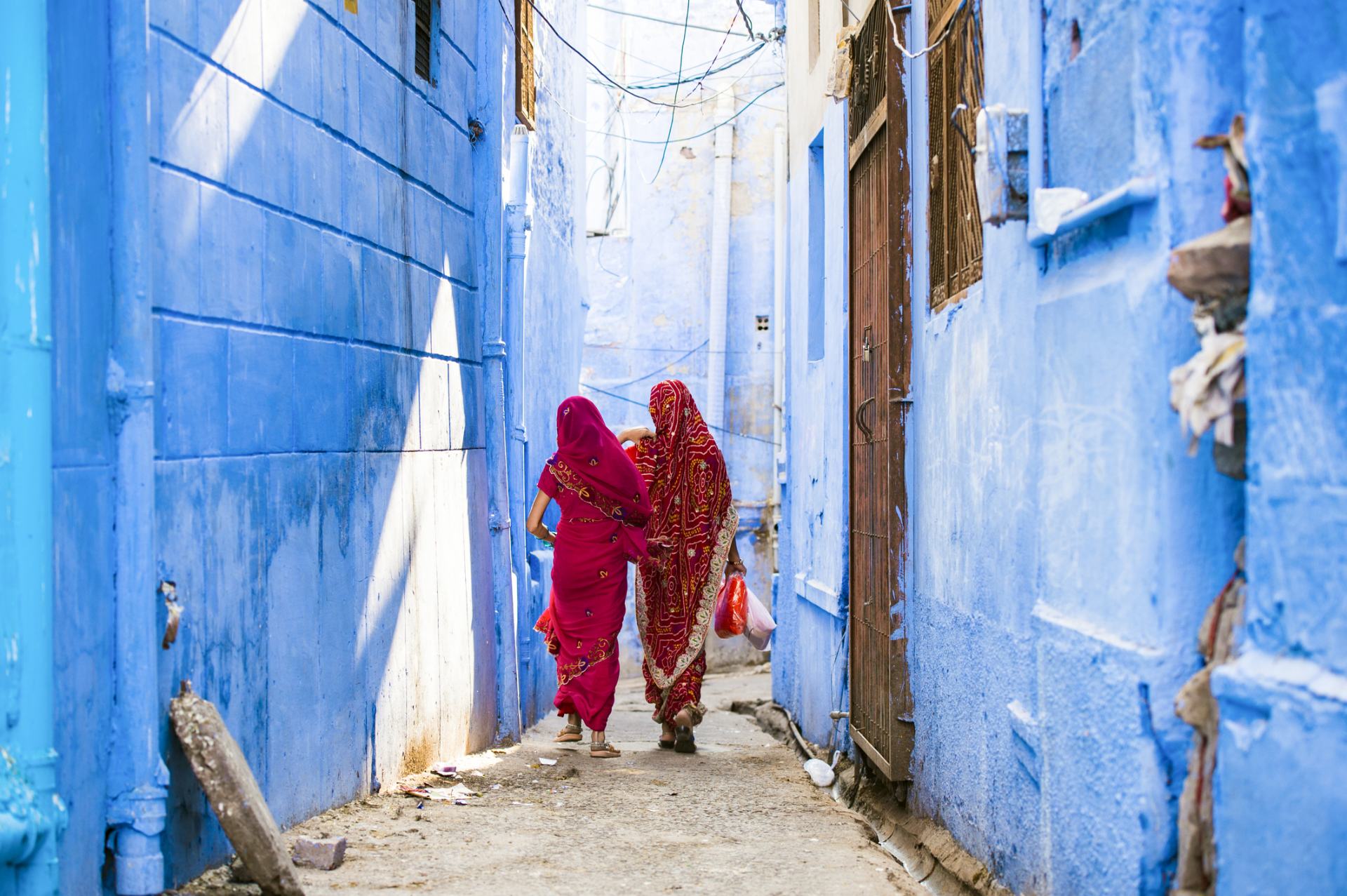 青の街、というと最近はモロッコのシャウエンが有名ですが、インドの青の街もぜひチェックしてみてください。鮮やかなサリーを着た女性が青の街に溶け込む風景は、「ここでしか撮れない」エキゾチックで美しいイメージです。
