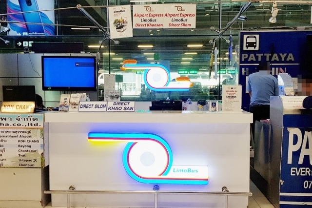 スワンナプーム国際空港1階の8番出口近くに、リモバス(LimoBus)の窓口と乗り場があります。事前予約の必要はなく、9時~21時の時間帯に、直接窓口まで行き、行き先(ホテル名など)を伝えます。