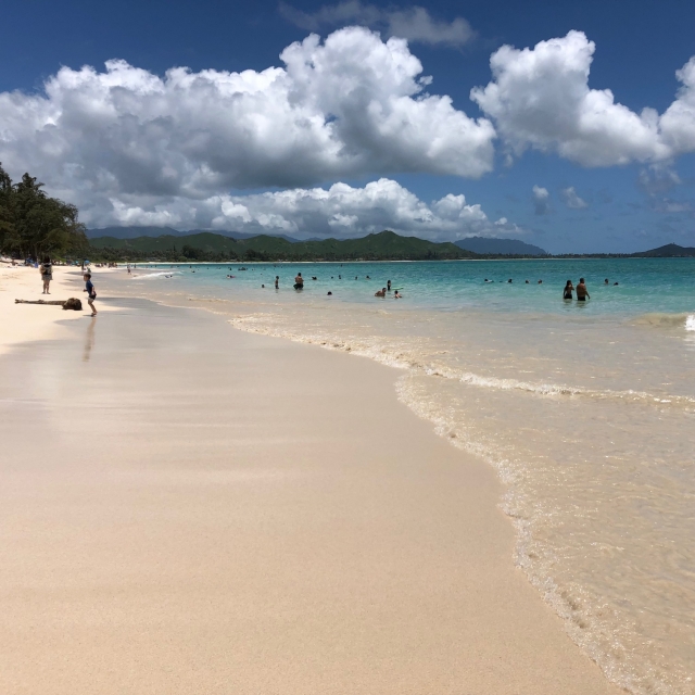 小さな子供とビーチで長時間過ごすなら、水シャワーと着替えスペース、そして木陰は必須です。その条件を満たすのが、オアフ島南東部のカイルア・ビーチパーク。ワイキキのビーチより水の透明度が高く、砂がきめ細かくて岩もほとんどなく足にやさしい。トイレはもちろん、フック付きの着替えスペースや水シャワーそして木陰もあります。広い駐車場から海が近いのも◎。その美しさでカイルア・ビーチと並び称されるお隣のラニカイ・ビーチは駐車場も水シャワーもないので、子連れには向きません。