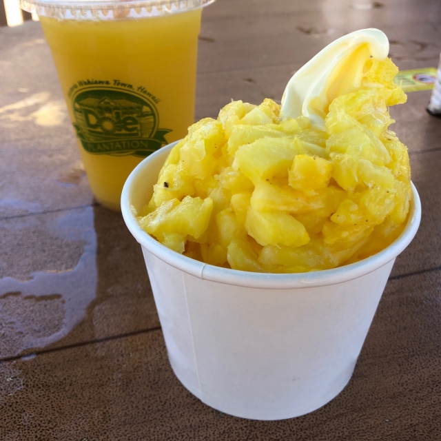 オアフ島北部のハレイワを訪れるなら、近くにあるドール・プランテーションにも立ち寄りたい。「パイナップルってこうやってなってるんだね!」と感心しきりの息子。オレンジ色の実や、縦に細長い実がなる種類があることにも驚いたようです。ちなみにパイナップルは成長に時間がかり、収穫できるまでに14~15ヵ月必要なのだそう。