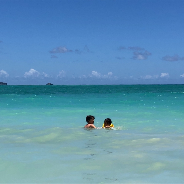 連れて行った息子は4歳。3度目のハワイ。今回一番目が輝いたのは、ノースショア(オアフ島北部)のChuns Reefというビーチでウミガメを見つけた時のこと。「大きい! 泳いでる泳いでる!!」と大興奮でした。レンタカーを借りてハレイワまでドライブした甲斐がありました。