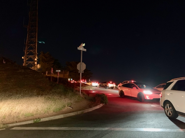 丘の中腹まで路上駐車が連なっており、特に霧がない夜(景色が澄んで見える夜)は激しい混雑となります。風がなく、よく晴れた日の夕刻から夜景観賞のための渋滞が発生します。