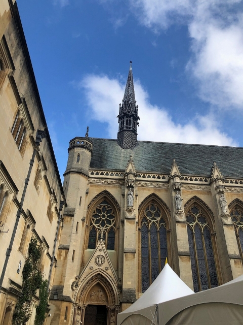 創立は、1264年。オックスフォード大学にある38のカレッジのうち最も最古。トールキンは1945〜1959年まで英語英文学の教授を務めました。オックスフォードでは、各カレッジに独自の図書館がありますが、マートン・カレッジの図書館は創立以来現在までずっと使われ続けている最古の学術図書館として、今でも学生や研究者たちに愛用されています。通路の両脇に本棚が並び、古書の匂いのする、まるで中世にタイムワープしたかのような空間。このカレッジは今上天皇の留学先としても有名です。