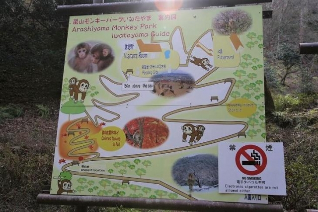 「嵐山モンキーパークいわたやま」は、標高160mのところにあります。京都の観光名所である渡月橋から「嵐山モンキーパークいわたやま」の入り口までは、徒歩数分ととても近いです。しかし、入り口から展望台のある山頂までは、徒歩約20分の急斜面の山道を登らなければなりません。