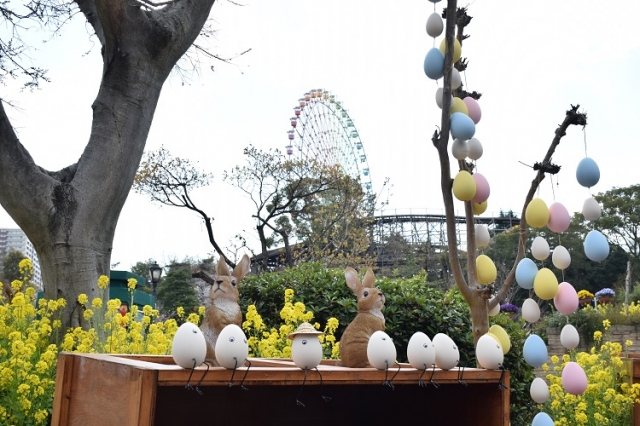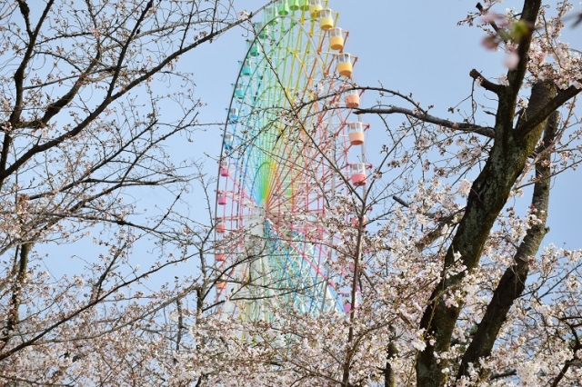 ひらパーには、観覧車やジェットコースターなど40以上のアトラクションがあります。乗り物の種類だけなら一般的な遊園地とかわりませんが、季節の移り変わりを楽しむことができるのがひらパーの特徴のひとつです。春は、桜やチューリップ、菜の花。春と秋には、ローズガーデンで美しいバラを見ることができます。