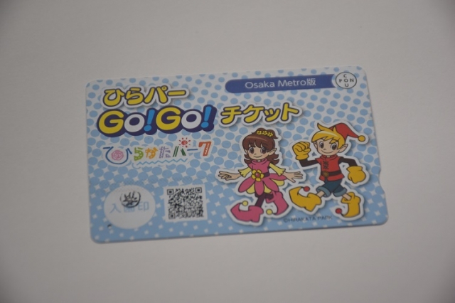 ひらパーのチケットには、「ひらパーGo!Go! チケット」があります。入園料と電車の料金がセットになったものです。京阪電車版、Osaka Metro版などがあり、電車でひらパーに行く方におすすめです。これらは、各電車の駅でしか購入できません。電車に乗る前に駅で購入してください。上の写真はOsaka Metro版で、駅の改札に通すことができます。そのままひらパーに入園することもできますし、フリーパスを購入するときには、提示すると割引が受けられます。