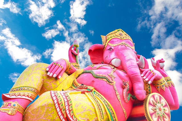 巨大なピンクガネーシャ像で有名なワット・サマーン・ラッタナーラーム(Wat Saman Rattanaram)は、バンコクから車で約1時間30分のチャチュンサオにある寺院です。ガネーシャ像のまわりには7つの曜日に色分けされたネズミ像があります。願い事は、自分の誕生日の曜日と同じ色のネズミにそっと囁きます。