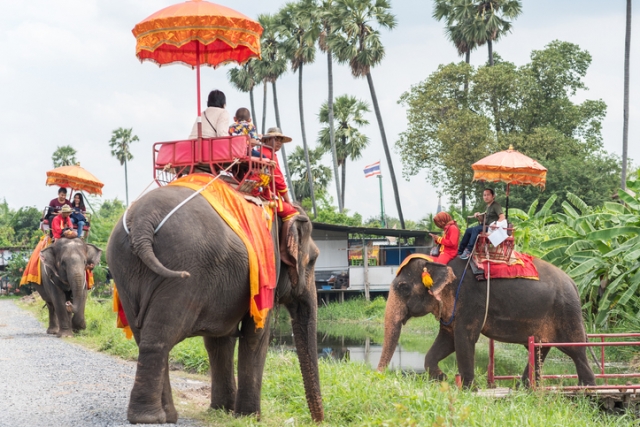 タイで人気のアクティビティーといえば、エレファント・ライド(ゾウ乗り)でしょう。タイ中部の都市アユタヤにあるアユタヤ・エレファント・キャンプは、ゾウとのふれあいスポットとして有名です。