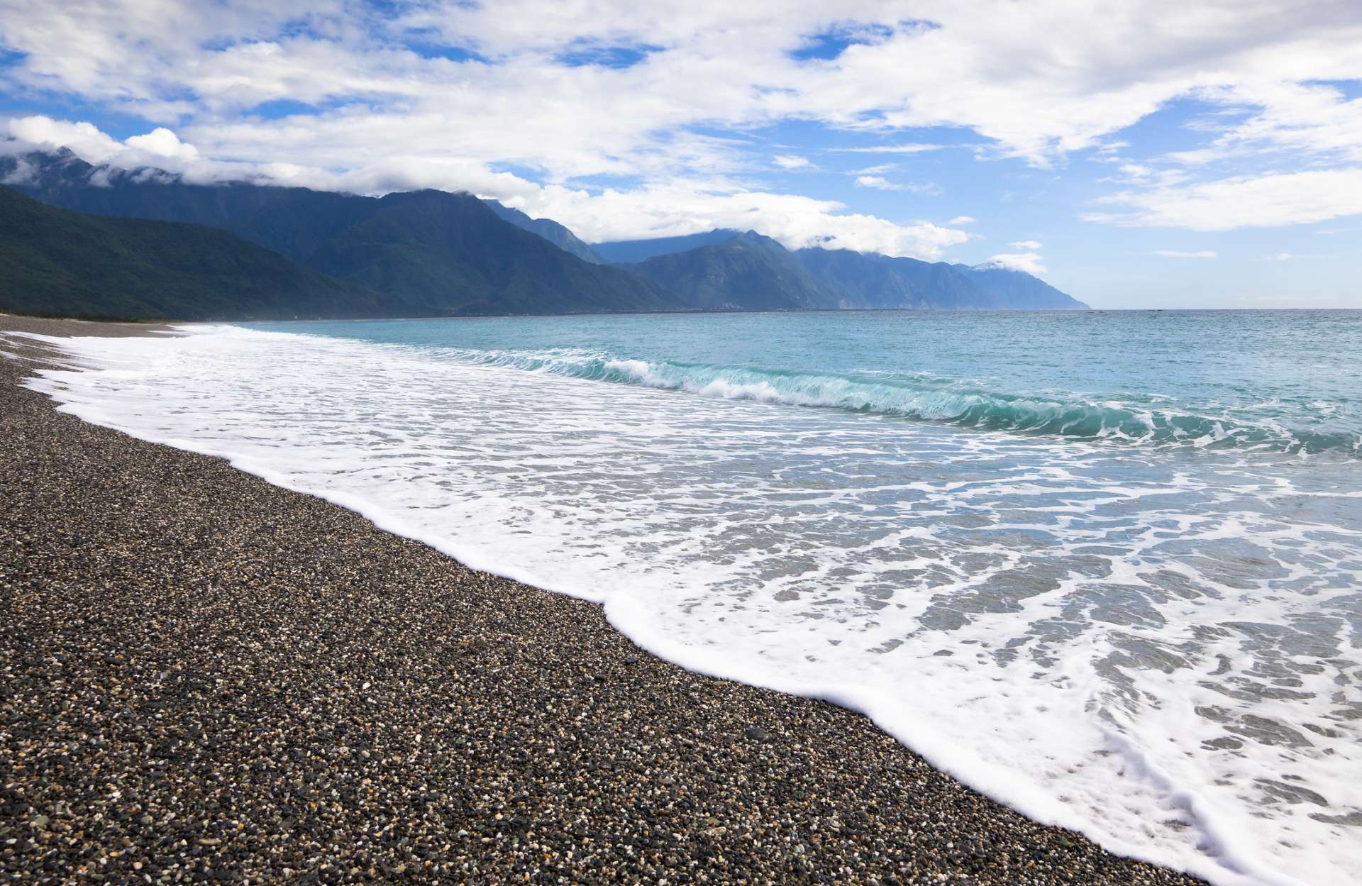 市内から約7㎞北にあり、美しい弧をなす絶景ビーチ。「花蓮」站からタクシーで約20分のロケーションで、若者のデートスポットとしても知られています。断層で形成された海峡と優美な弦状の湾が特徴で、ビーチからは遠くに緑深い中央山脈も眺められます。波が高く潮の流れも速いため泳ぐことはできませんが、晴れた日には海の色がコバルトブルーに染まります。