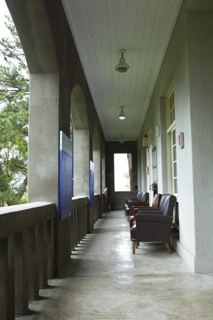 建物はレンガを使用した洋風建築や日本の瓦を載せた折衷スタイルなど。そのまま残った防空壕には現在特攻隊の資料が展示され、軍人が自害した日本式の小屋も修復されています。施設は一望する高台にあり、松の大木が茂る敷地も特徴的です。「花蓮」站前のバス停から1133番のバスに乗車しバス停「松園別館」下車、またはタクシーで約15分です。