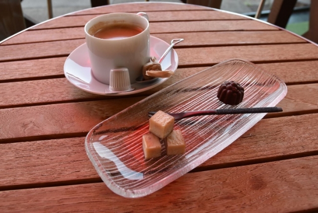 スイーツもいろいろあって、どれを食べようか迷うほど。チョコレートとコーヒーのセット(贅沢カフェセット)をチョイスしました。贅沢カフェセットのチョコレートは、小学校時代に家庭科室だった部屋を工房にしたところで製造しているのだそう。宮城県ゆかりの食材を練り込んだ生チョコレートは、ゆずやいちごのほか、仙台味噌や醤油とコラボした珍しい味。必食です。