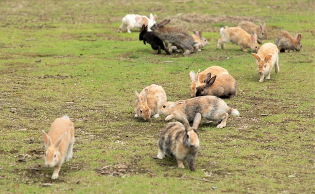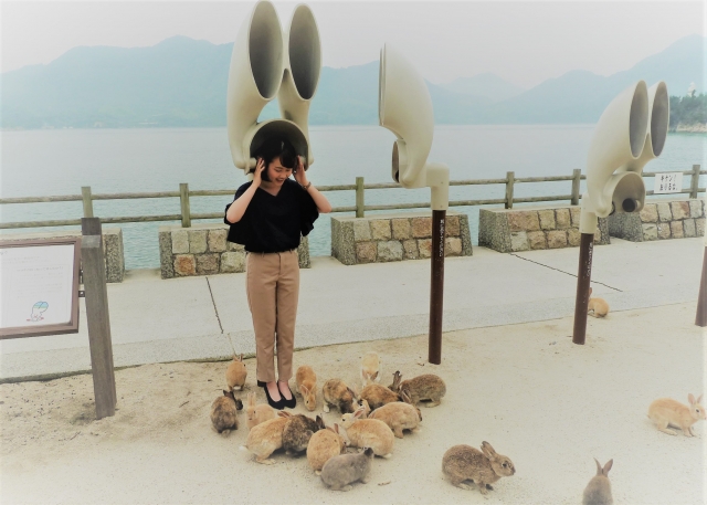 大久野島は周囲4.3㎞という小さな島です。現在は国立公園に指定されていますが、戦中には毒ガスを製造していた島ということもあり、「地図に載っていなかった」時代がありました。いま、うさぎの数は900羽ほど。もとはといえば、1971年に島外の小学校で飼いきれなくなったあなうさぎを8頭ほど放したことがきっかけと言われています。ということは、50年弱で100倍以上になったということですので、これも平和のたまものなのかもしれません。