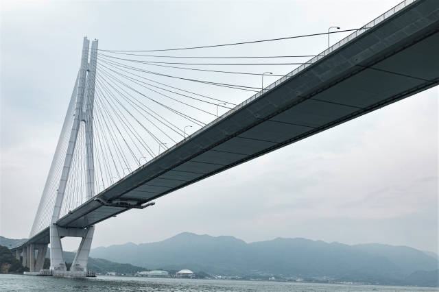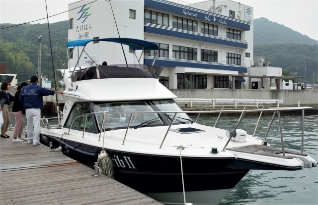 うさぎたちが見送ってくれている中(そう思うことにしました)、ふたたびクルーザーに戻って「しまなみ」の風景を進んでいきます。広島県尾道と愛媛県今治を結ぶ瀬戸内しまなみ海道の多々羅大橋、村上水軍の水軍城跡がある甘崎島、タンカーなどを造船する今治ドック、そして、通称で軍艦島とも言われている契島(ちぎりじま)のそばをクルーズして、竹原港に戻ったのはお昼すぎの時間帯でした。この日は、すっきりと晴れ渡る空ではなかったけれども、船の上から眺める景色の美しさがほんとうに印象的でした。