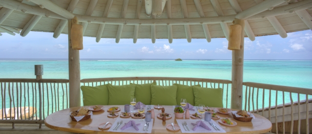ソネバジャニの1ベッドルーム・ウオーターリトリート。ラグーンビューの2階にインヴィラダイニングをアレンジし、こんな風に食事を楽しむこともできます。吹き抜ける風、爽快な眺めは2階建てならでは! また、ソネバジャニはテーマを持ったダイニングエリア、メニューが充実しています。その日の気分次第で行きたい店、食べたいものを選べるというお楽しみも。メニュー豊富で混雑知らず、いつでも快適にお腹を満たすことができますよ。