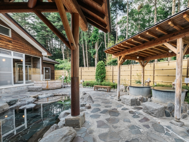「道の駅こすげ」には、高アルカリ性温泉の「小菅の湯」が隣接しています。肌がつるつるになるといわれる湯で、しっとりした温泉は美肌効果が抜群と評判です。美人の湯として、人気の温泉です。大風呂、寝湯のほか、露天風呂には五右衛門風呂やハーブ・薬草などのイベント風呂もあり、9つのお風呂を楽しめます。館内には、蕎麦や和食を楽しめる食事処もあります。