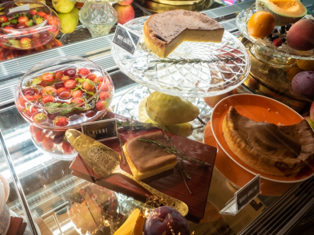 スイーツがディスプレイされたショーケースは、ヨーロッパにいるような錯覚に陥る空間です。ショーケースの上に飾られた精巧な飴細工もチェックしてみて。