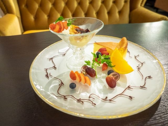「デザートミスト」は、「SALON de CHICCA」自慢のオリジナルスイーツとフルーツを予算に合わせて盛り合わせてもらえるもの。記念日のサプライズアイテムとして、人気のスイーツです。