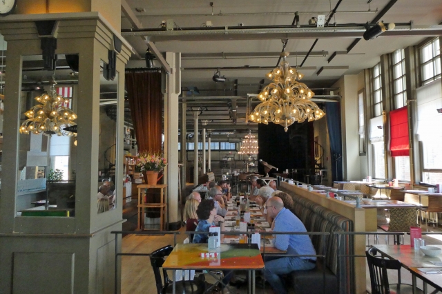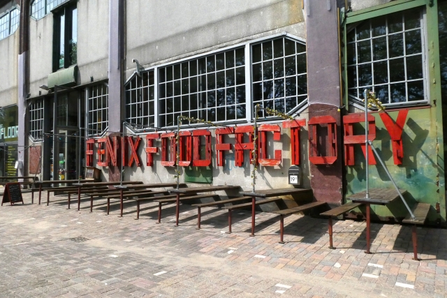 着いた埠頭のKatendrechtは、かつては売春宿が立ち並び、ポン引きがうろつく物騒なエリアでした。2010年代、ロッテルダム市が再開発に着手、ドックヤードがギャラリーになったり、古いレストランからこぢんまりとしたおしゃれなカフェなどになったりするごとに雰囲気が変わっていき、いまや殺風景なドックヤードがヒップ! とすっかりおしゃれなエリアになっています。その中心にあるのが、2014年にオープンしたFenix Food Factoryというフードコートです。