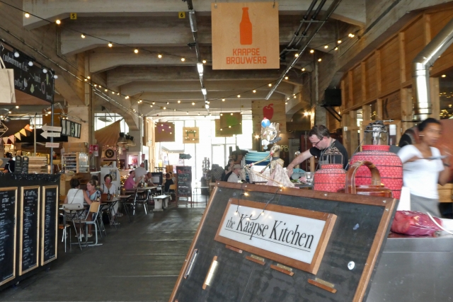 Fenix Food Factoryが人気なのは、ロケーションもさることながら、ロッテルダマー(ロッテルダムの人々という意味)のフードアントレプレナーだけを集めたことも大きいと思います。ロッテルダマーたちは、独立心旺盛で、商売熱心、そして地元愛がとても強いのです。コート内は地ビールやチーズ農場のチーズ、ベーカリー、精肉、本など個人商店がごちゃっと集まっており、買ったり、食べたり、休んだりすることができます。